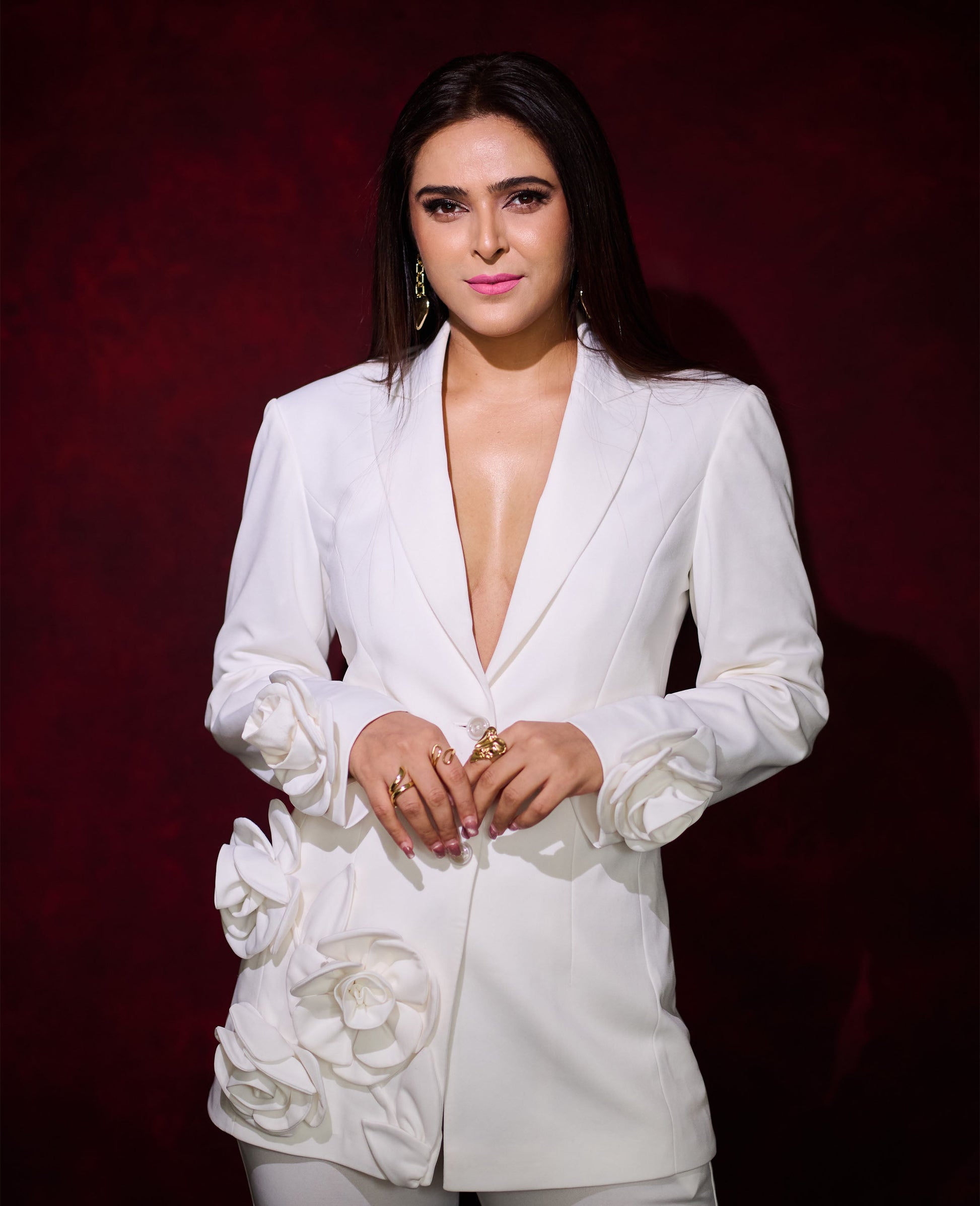 3D Patched Flower Blazer Set
