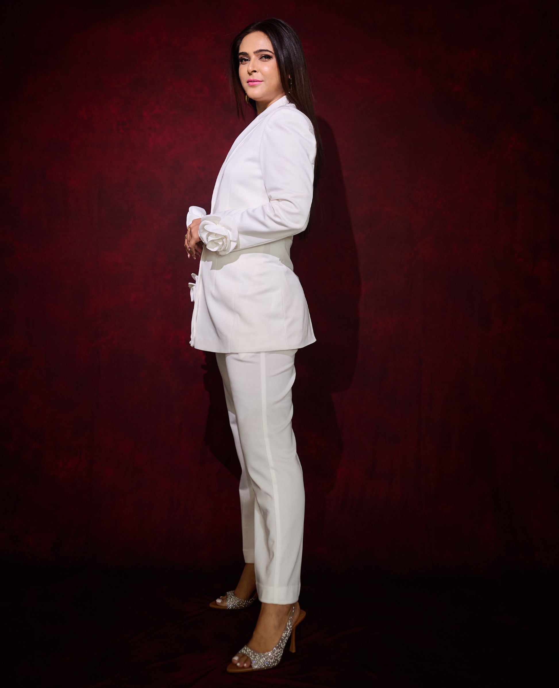 This 3D Patched Flower Blazer Set is a mix of elegance and style. The white blazer has beautiful 3D flower designs on the sleeves and side. It comes with matching straight pants. Perfect for parties, events, or any special day when you want to look classy and stylish.