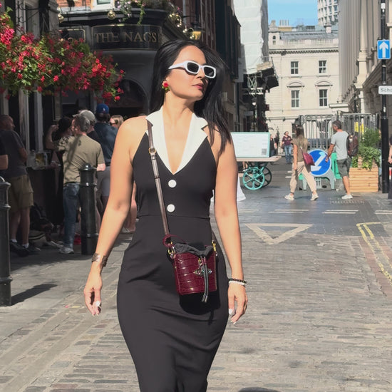 Elegance, power, and allure define the Noir Royale Maxi Dress. A dramatic black evening dress with a tuxedo-inspired collar and tailored buttons, it hugs the figure while exuding refinement. The perfect fusion of classic style and bold confidence.