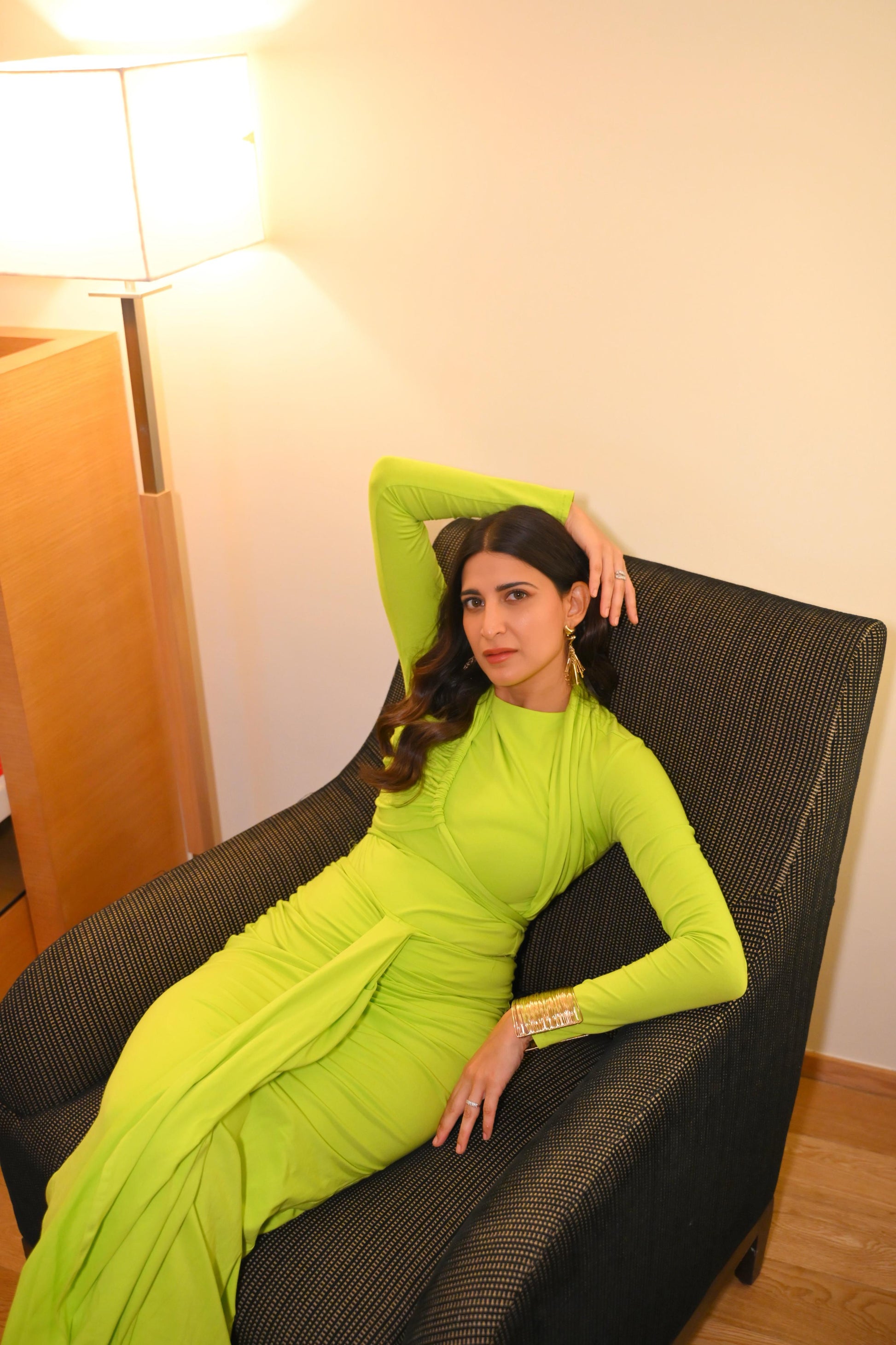 Premium stretch jersey with a soft feel, body hugging, stretchy, asymmetric pleated neckline, ruched bust detailing. Matching skirt set. Available colors: chocolate brown, lime green and royal blue
